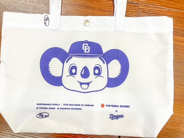 セリーグ中日ドラゴンズのマスコットキャラクター【ドアラ】がプリントされたトートバッグ